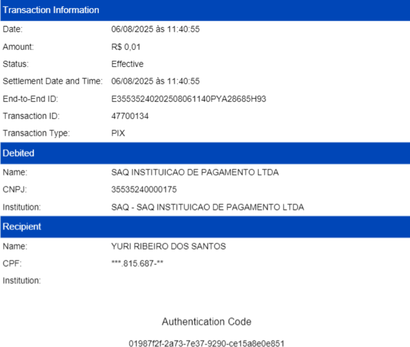 | uuid | String | Fill in the EndToEnd ID, the unique identifier generated | EX: E0000002025000000YVCD4SNVVM |