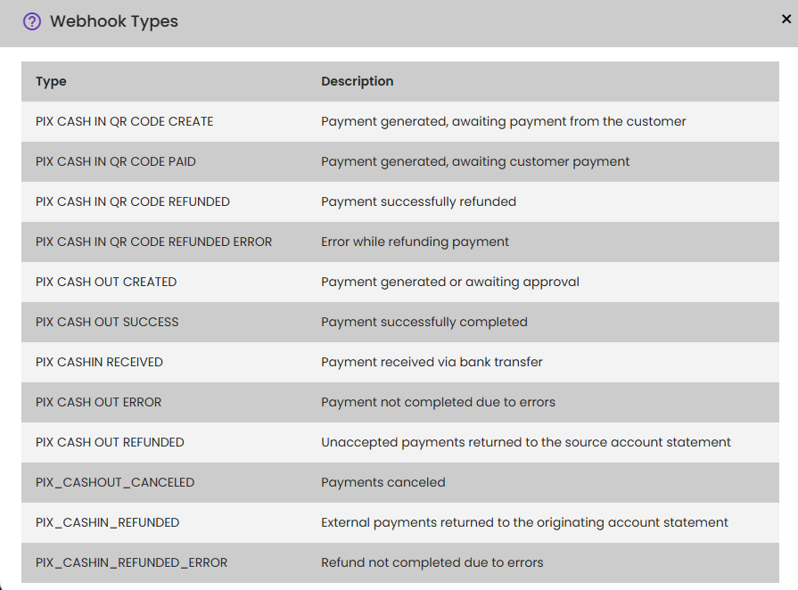 The following types of webhooks can be activated for various receipt-related events: